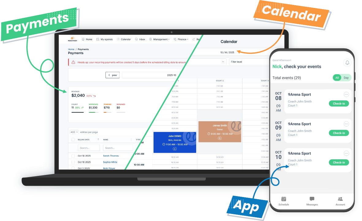 “Play Match Point has completely changed how we run our academy. Scheduling lessons, tracking payments, and managing players is finally organized - no more spreadsheets or last-minute messages.”